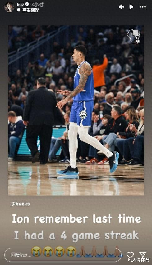库兹马在动态中写道:“我都不记得上次经历4连胜是什么时候了。”还配上了笑哭和双手合十的表情。数据显示,库兹马上一次在NBA常规赛中达成4连胜,要回溯到22 - 23赛季,那时他助力奇才队打出过一波令人瞩目的6连胜。但在此之后,奇才队为了交易重建选择摆烂,近几个赛季战绩惨淡,常常遭遇长时间的连败。今年休赛期,库兹马与米德尔顿完成互换,正式加盟雄鹿队。